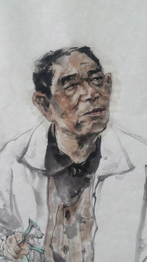 “为人民写真" 庆祝建国七十周年张智栋写意人物画作品展线上作品欣赏① 《中学退休物理教师盛培本老师》