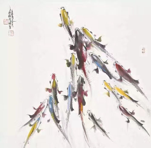 张智栋中国画作品收藏推荐鱼趣65×65cm,水墨纸本(镜片),壬辰年(2012年)作款识:壬辰年,上海張智棟畫印鉴:張、智棟畵印、長樂市场价格:¥25800元