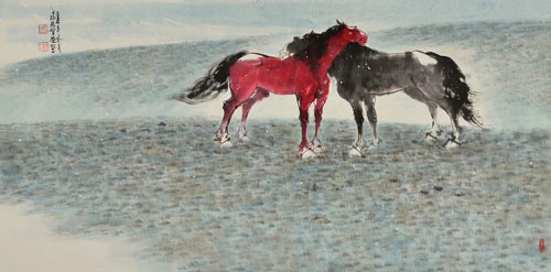 张智栋中国画精品作收藏推荐 《牧马图》