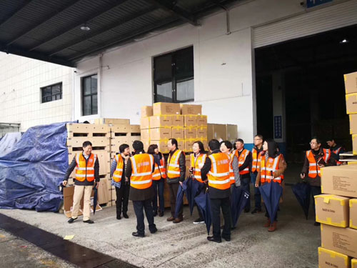 上海市虹口区政协委员在石主席带领下视察上海云丰国际物流公司,蒙蒙雨雾中大型机械工作繁忙……现场为云丰企业三兄弟挥毫泼墨