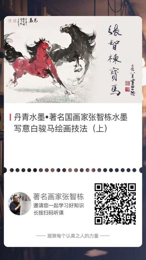 迎国庆佳节!张智栋工作室祝大家节日快乐!祝贺张智栋水墨教室上线!欢迎书画爱好者体验学习使用方法:长按二维码进入微课页面,点击【系列课程】进入系列微课页面,请先选1元课程体验学习,然后购买您想要学习的沪上中国画家张智棟骏马绘画课程!