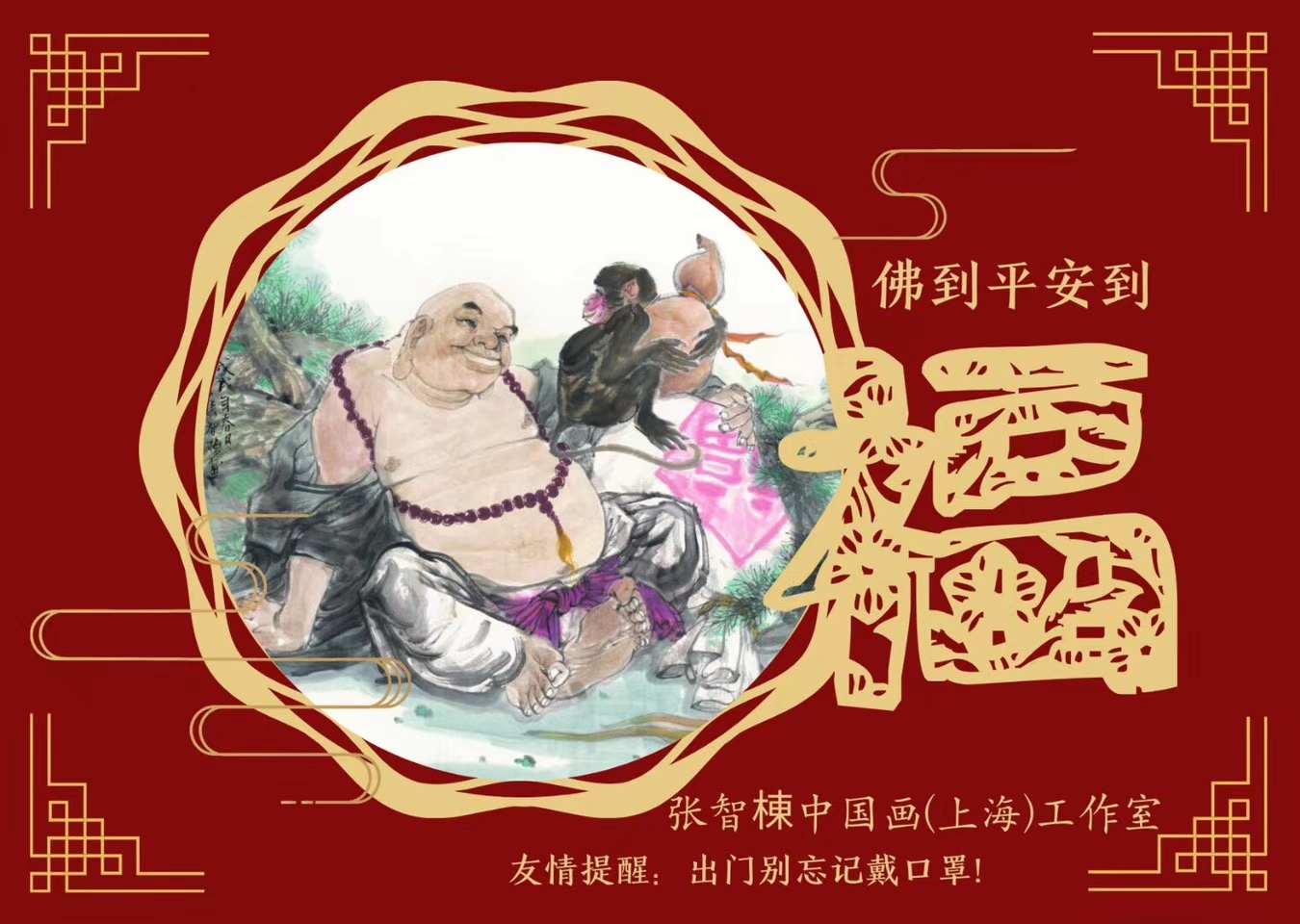 张智棟先生弥勒笑佛作品《华雨弥天》2024年新春贺礼/迎春图