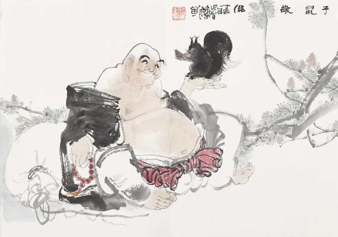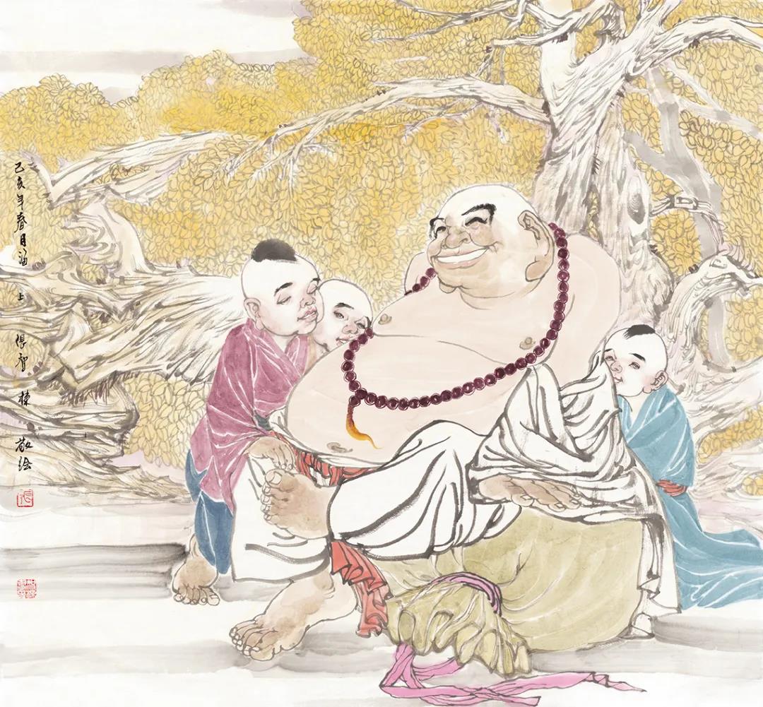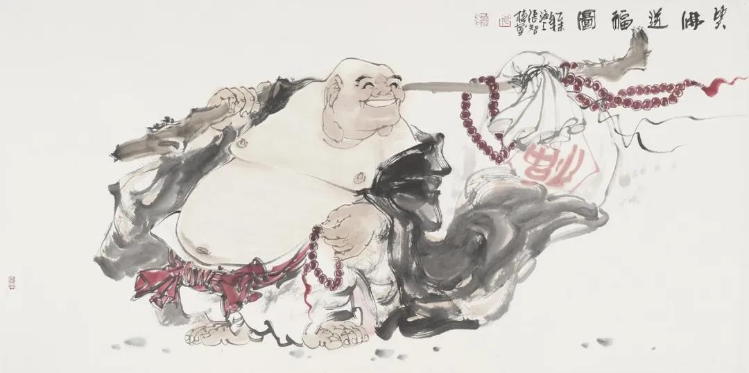 布袋和尚是弥勒佛祖转世,又被称为“笑佛”。四十余年来我致力于中国写意人物画创作,"弥勒笑佛"是本人多年来艺术创作的重要题材。