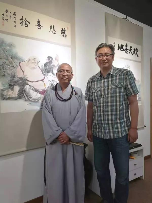 三年前张老师发宏愿要创作108幅人间弥勒笑佛中国画作品、拜访108座世界知名寺庙、恭请108位高僧大德为作品创作开示、加持、护佑!自此亲身万里行、拜三山五岳、四大佛山、遍访古刹名林寻觅笑佛的踪迹。“以心修行,以禅入画”虔诚创作,以纯净无染的留白,虚实相生的写意手法,寥寥数笔的轻松线条就将大肚弥勒佛背着布袋潇洒走四方的生动形象描绘得栩栩如生。 憨态可掬的盈盈笑脸,敞开衣襟大腹便便,胸前的佛珠迎风飘荡,身后的蒲扇轻轻摇曳------让人观之油然而生一种轻快愉悦之感。