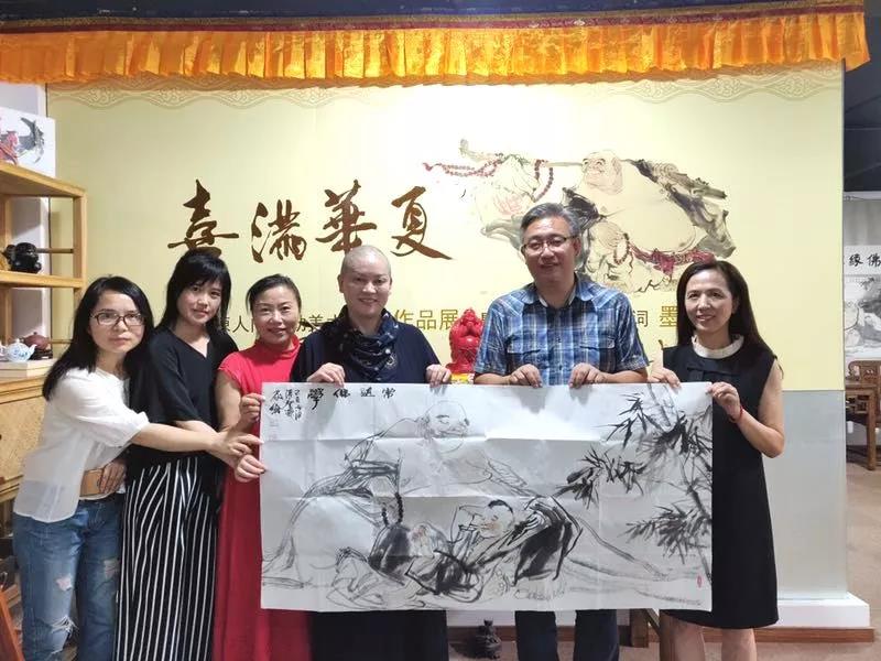 以快乐恬淡的笔墨、活泼自在的心境,挥洒出笑意醉人、自在洒脱的人间弥勒笑佛,"以心修行、以画供养、一笑一自在、一画一善缘"。