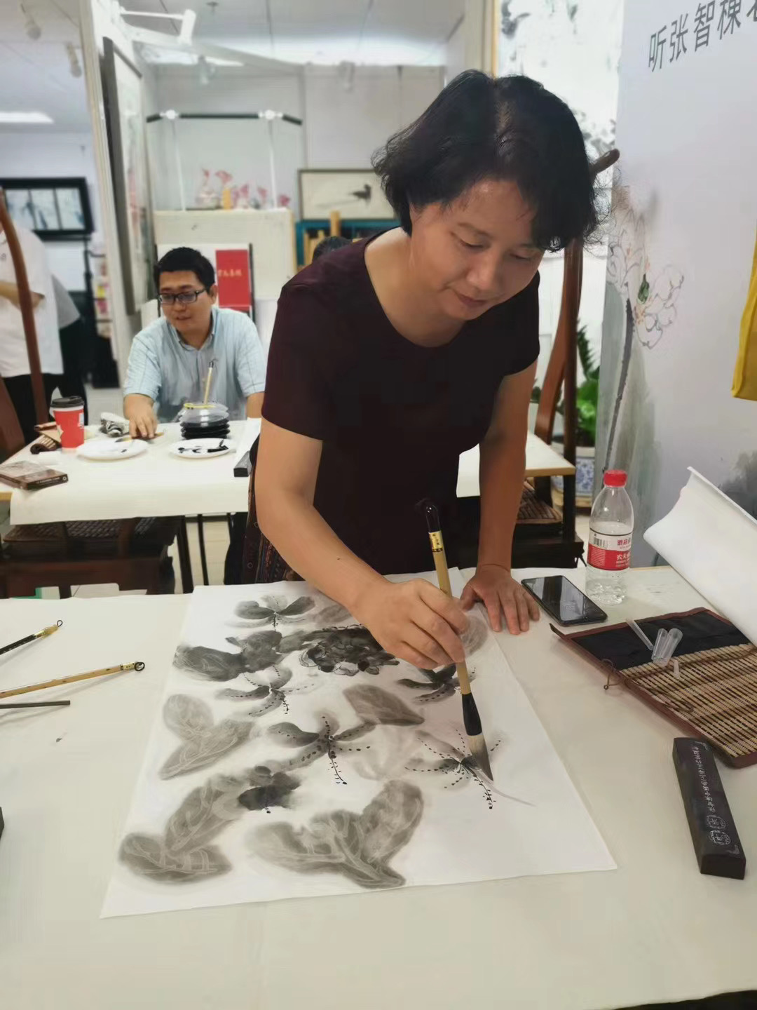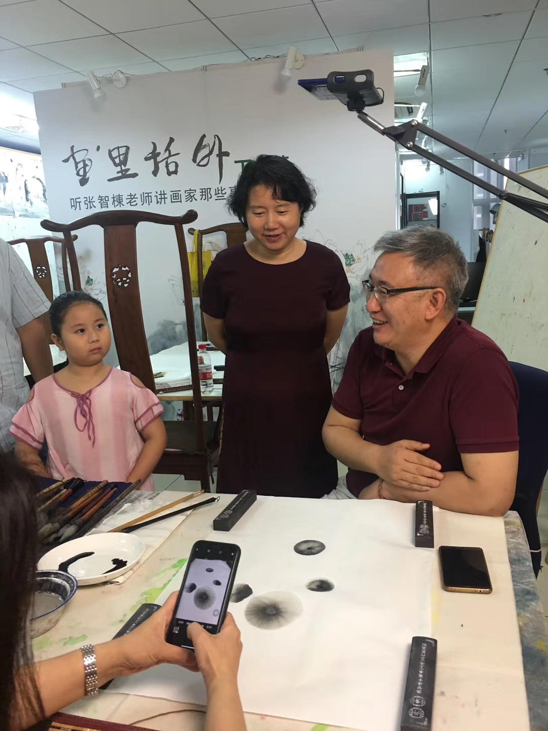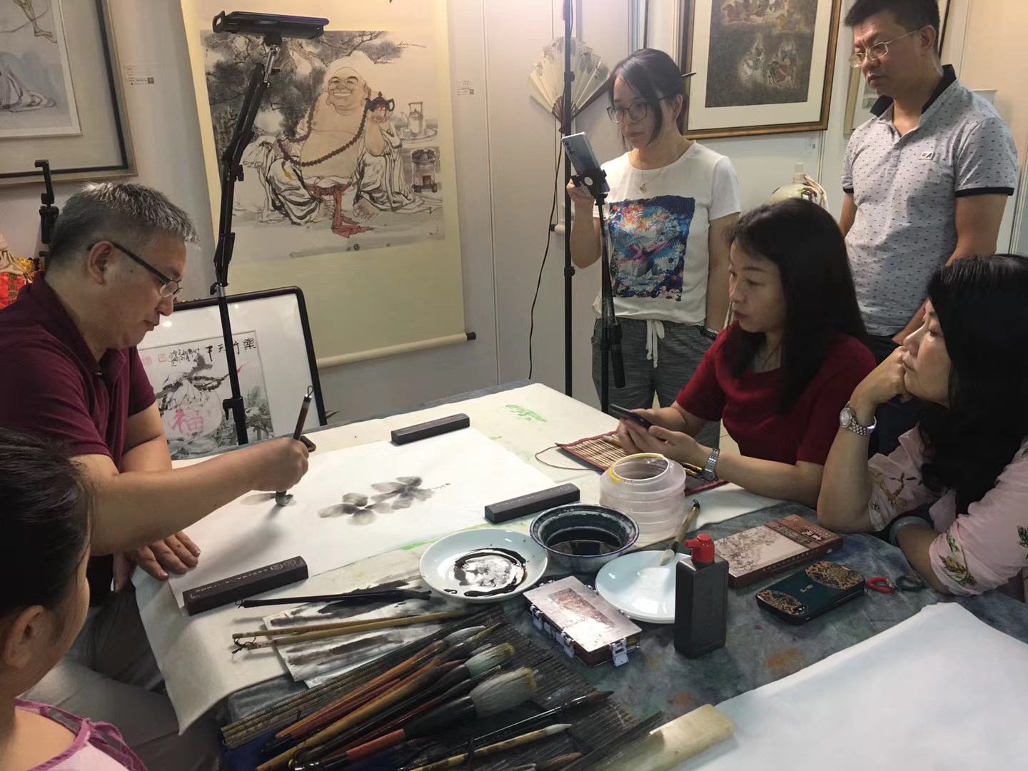 第二期“丹青丝韵-张智棟手绘丝巾课程活动”如期开始,张老师就中国水墨画的笔、墨、纸特性和水的运用及呈现出来效果跟大家做了生动有趣,深入浅出的讲解,神奇水墨体验开始啦