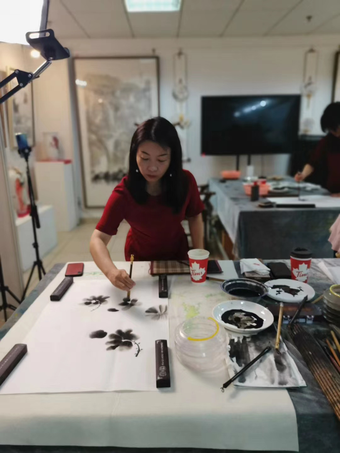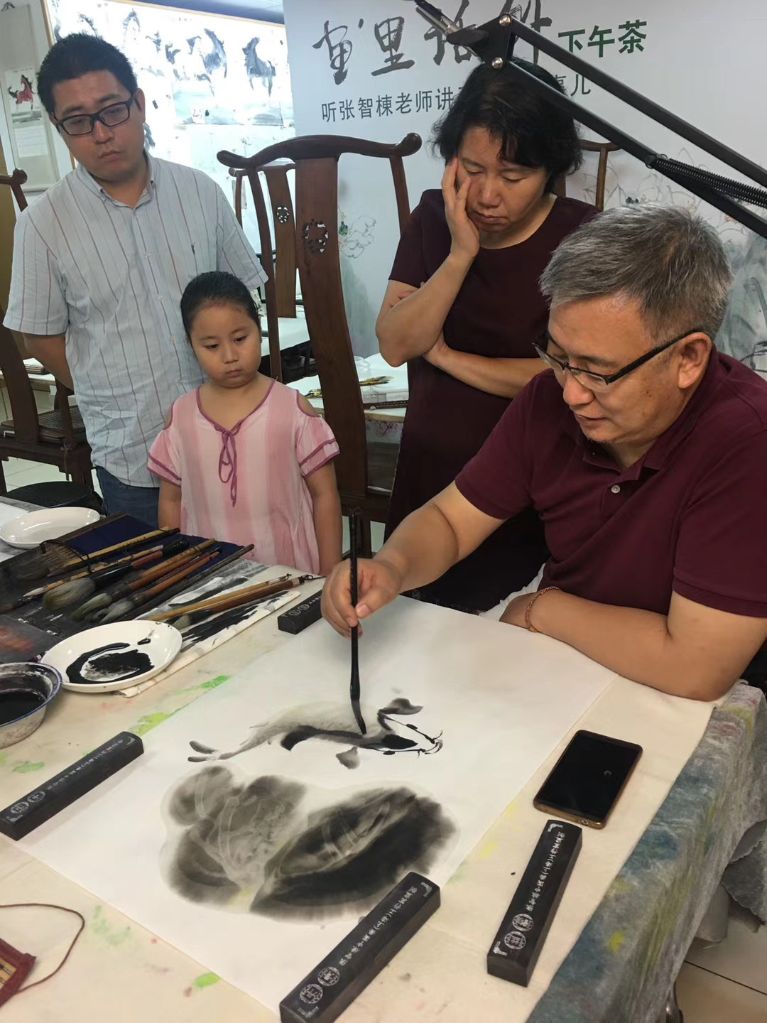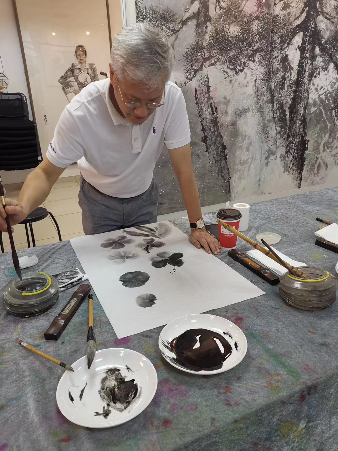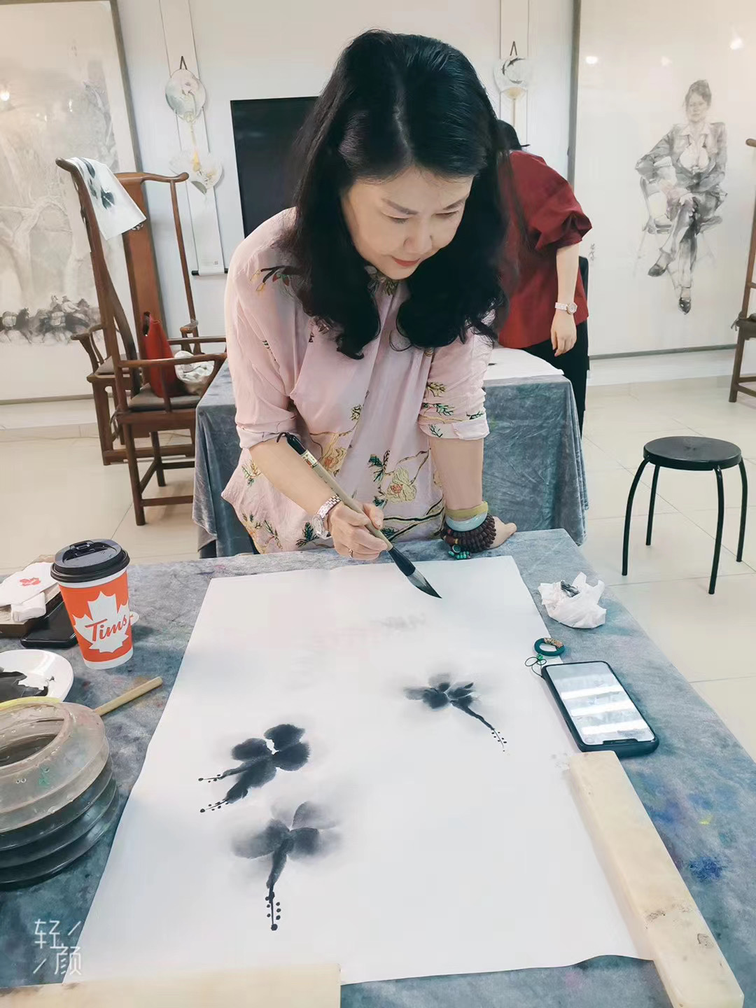 第二期“丹青丝韵-张智棟手绘丝巾课程活动”如期开始,张老师就中国水墨画的笔、墨、纸特性和水的运用及呈现出来效果跟大家做了生动有趣,深入浅出的讲解,神奇水墨体验开始啦