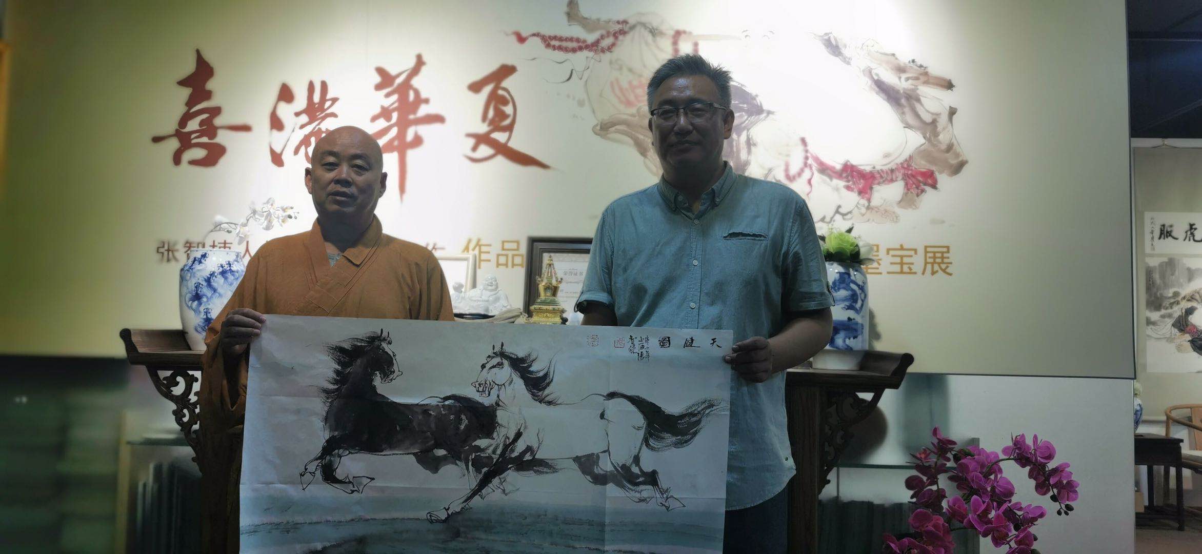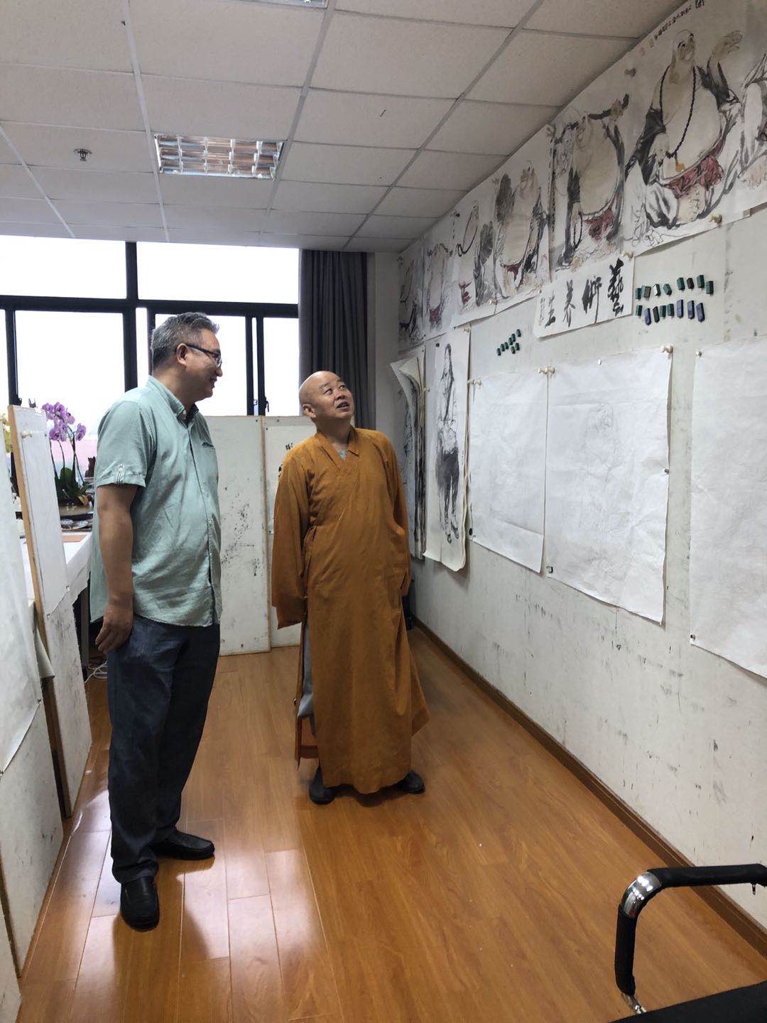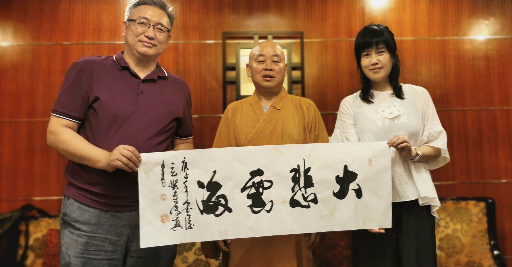 传真方丈详细了解了张智棟老师在项目作品创作过程中的工作细节、重点和难点,对"喜满华夏"创作项目给予了充分肯定,并鼓励要将此项目打造成"佛学文化"精品创作,促进中国传统文化的发展!表示如有需要将为张老师创作的实施提供必要的帮助!