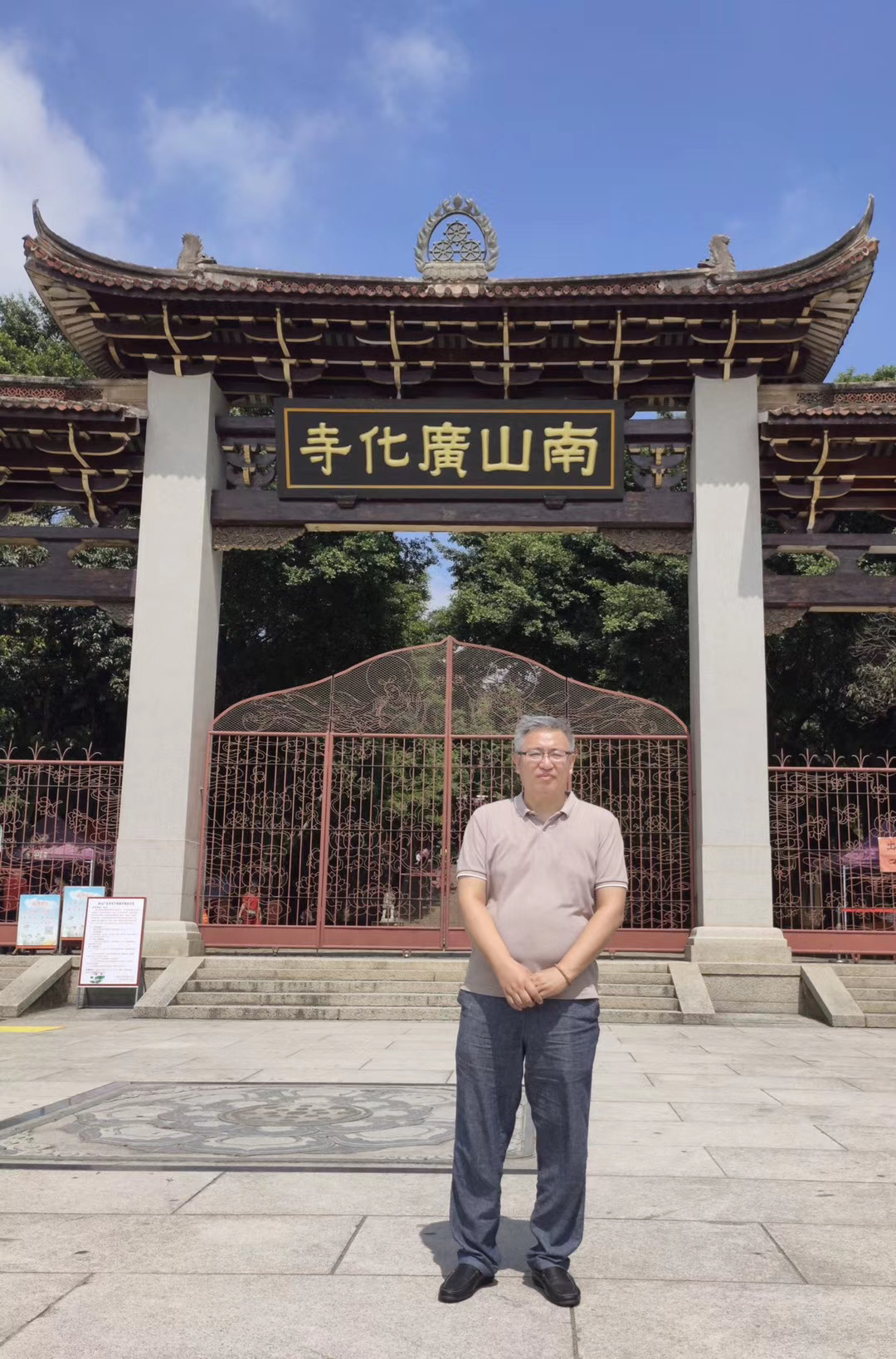 7月20日张智棟老师在上海长江软件园郑妙华董事长等一行朋友们的陪同下赴福建四大著名丛林"南山广化寺"采风创作,在摄氏38度的烈日高温下在寺庙采风。拜访了福建省佛教协会咨议委员会副主席、广化寺当家定兴大和尚,张智棟老师以一幅四尺对开《喜气洋洋》人间弥勒中国画作品结缘定兴大和尚,感谢广化寺热情接待!定兴大和尚为"喜满华夏一张智棟人间弥勒美术作品"题词创作了一幅《以戒为师》书法作品并合影留念。