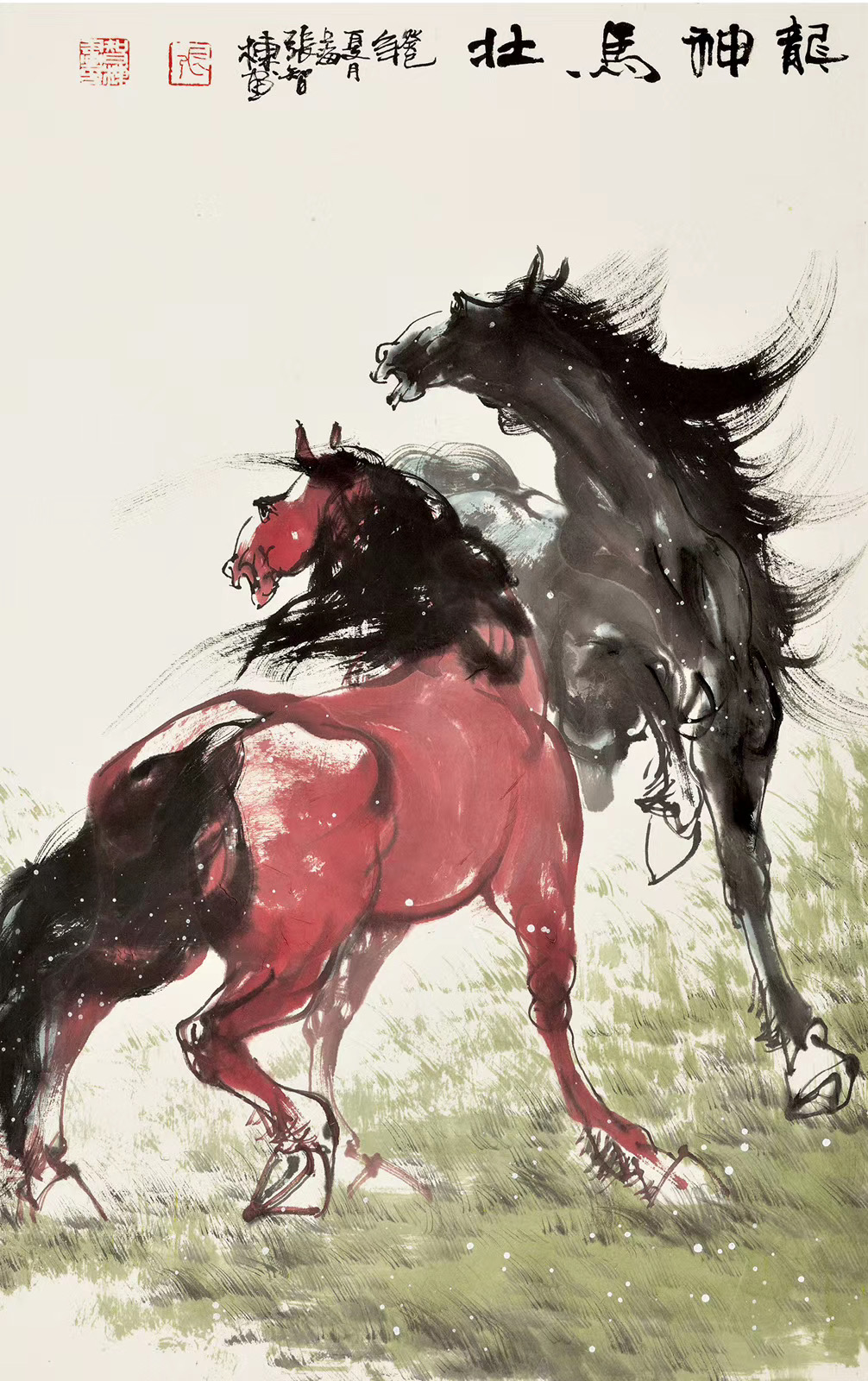 张智棟中国画作品欣赏《一日疾驰万里程》,此作品收录于由上海人民美术出版社出版的《张智棟宝马集萃》画册中。此作品已被收藏