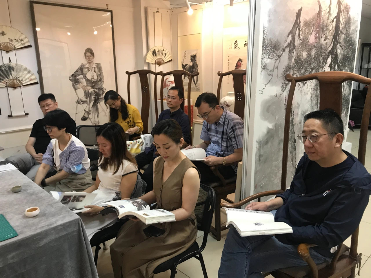 首先,总支主委张智栋携班子成员欢迎新盟员及积极分子加入美联,并带领大家走入艺术家工作室、观摩连环画创作基地、通过学习《美联风华——民盟上海美术工作者联合总支委员会发展历程》了解美联概况,并一同观看民盟市委拍摄的社会服务纪录片,从不同角度学习盟史、了解民盟、熟悉美联。