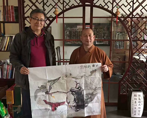 张老师笑佛系列创作得到佛教界无相、妙灵两位长老的开示和护佑,心中"佛缘欢喜"