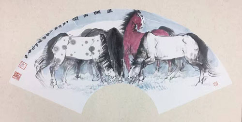 张智栋“汗血雄风”扇面系列作品推荐 惠风和畅