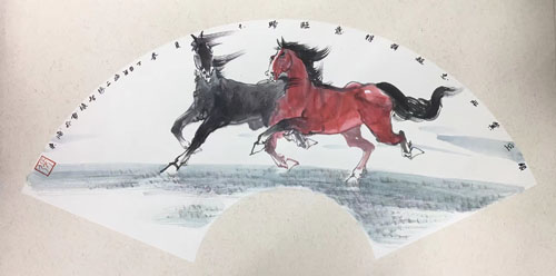 张智栋“汗血雄风”扇面系列作品推荐眼空冀北志超群 得意轻蹄不负春作品尺寸:33×66cm,水墨纸本(镜片),丁酉年(2017年)作款识:丁酉年海上張智棟畵於浦東印鉴:張市场价格:¥6800元