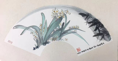 张智栋“空谷幽兰”扇面系列作品推荐蘭香作品尺寸:33×66cm,水墨纸本(镜片),丁酉年(2017年)作款识:丁酉年海上張智棟畵於浦東工作室印鉴:智棟畫印、長樂市场价格:¥6800元