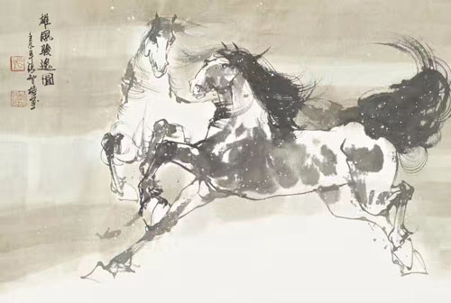 “跃马星洲—水墨画大师张智栋中国画作品展”作品精品收藏推荐 雄风骏逸图46×68cm