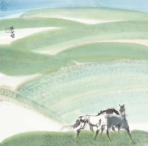 张智栋中国画作品收藏推荐草原牧歌68×68cm,水墨纸本(镜片),甲午年(2014年)作款识:張智棟印鉴:張市场价格:¥38600元