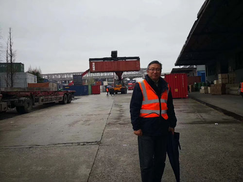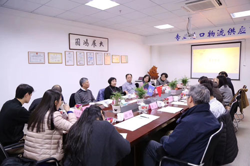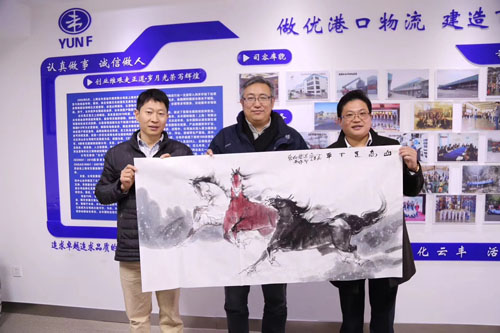 上海市虹口区政协委员在石主席带领下视察上海云丰国际物流公司,蒙蒙雨雾中大型机械工作繁忙……现场为云丰企业三兄弟挥毫泼墨