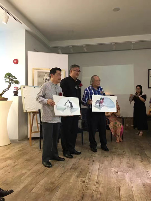 "跃马星洲张智棟水墨作品展"2月3日晚在新加坡盛大开幕,新加坡100多位新老朋友欢聚一堂,出席了画展开幕式,感谢新加坡优美公司和新加坡亚轩公司的合作支持