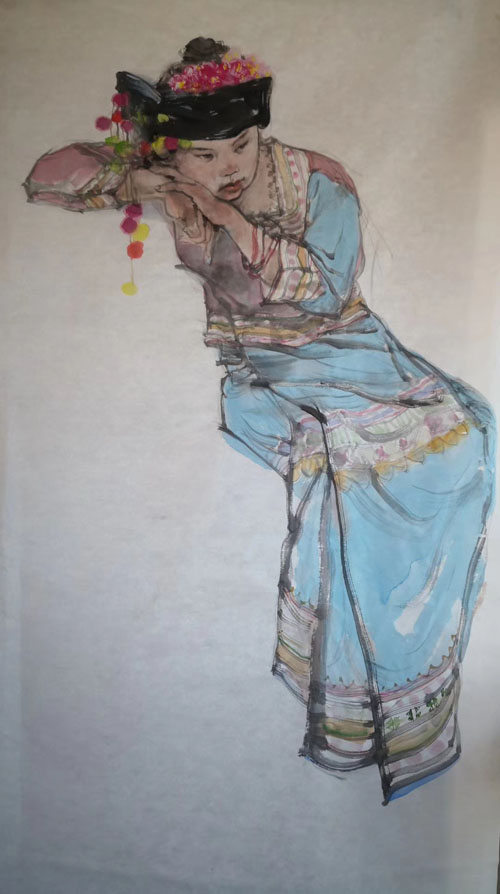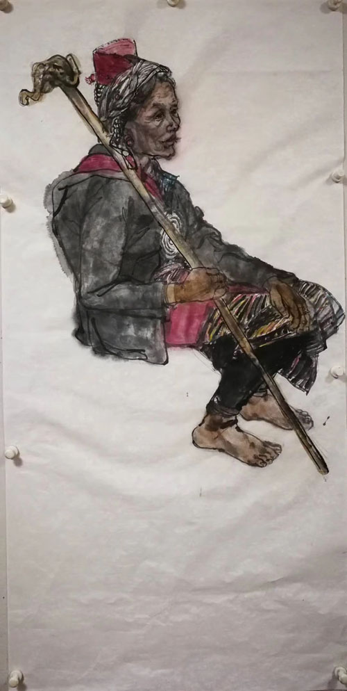 上海中国人物画创作沙龙云南民族山寨采风写生作品欣赏