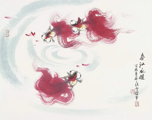 张智栋中国画作品收藏推荐 春江水暖 39x48cm