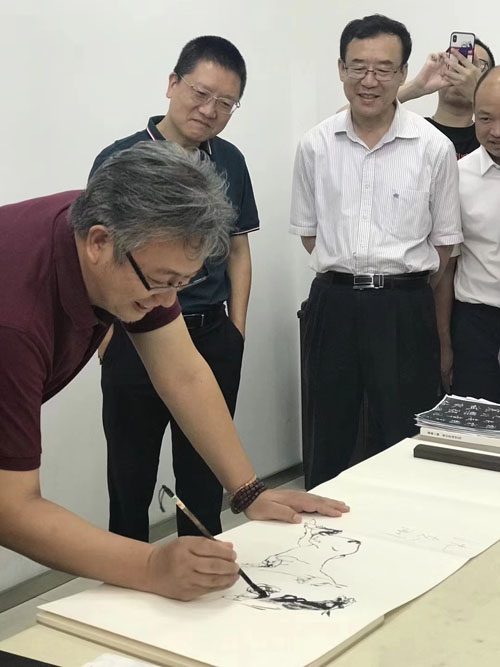 张智栋老师在苏步青纪念馆代表民盟上海美术工作者联合总支现场作画