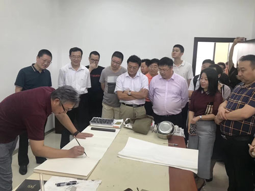 民盟上海市委常务副主委沈志刚带队上海民盟基层主委赴浙江温州调研考察,张智栋老师在苏步青纪念馆代表民盟上海美术工作者联合总支现场挥毫为温州民盟留下丹青墨迹向民盟前辈致敬。