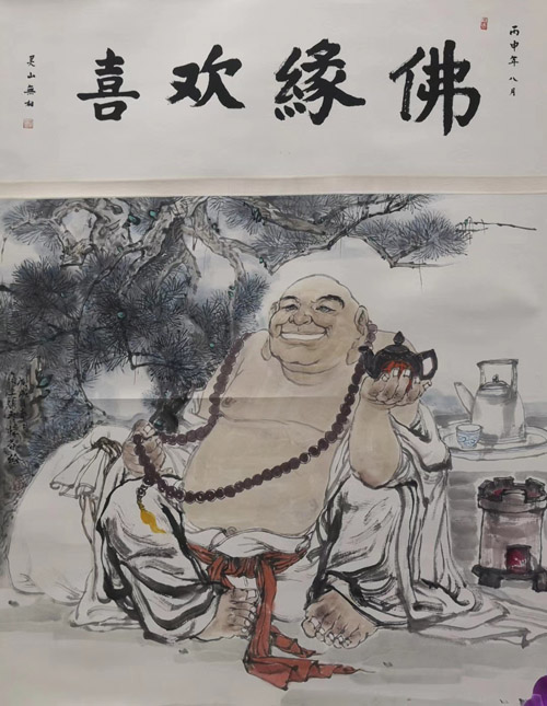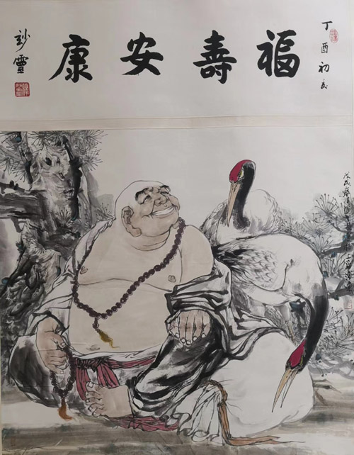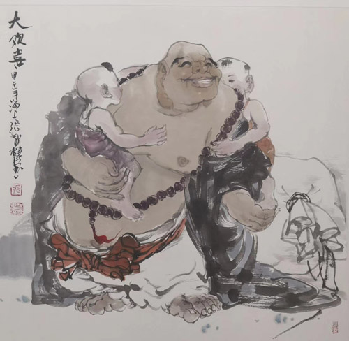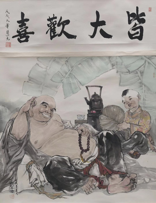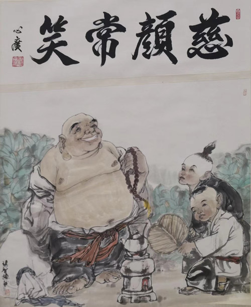 张智棟先生弥勒笑佛作品《华雨弥天》2024年新春贺礼/迎春图