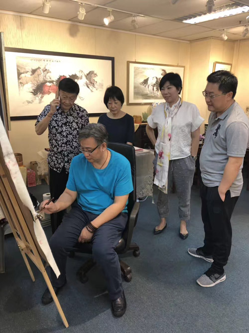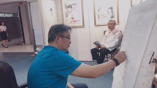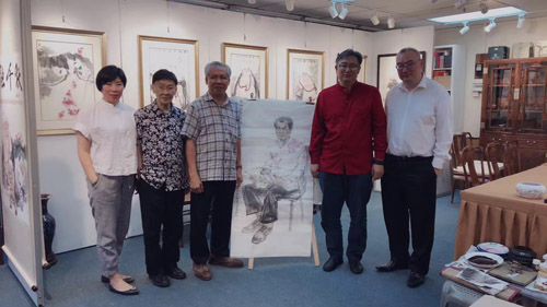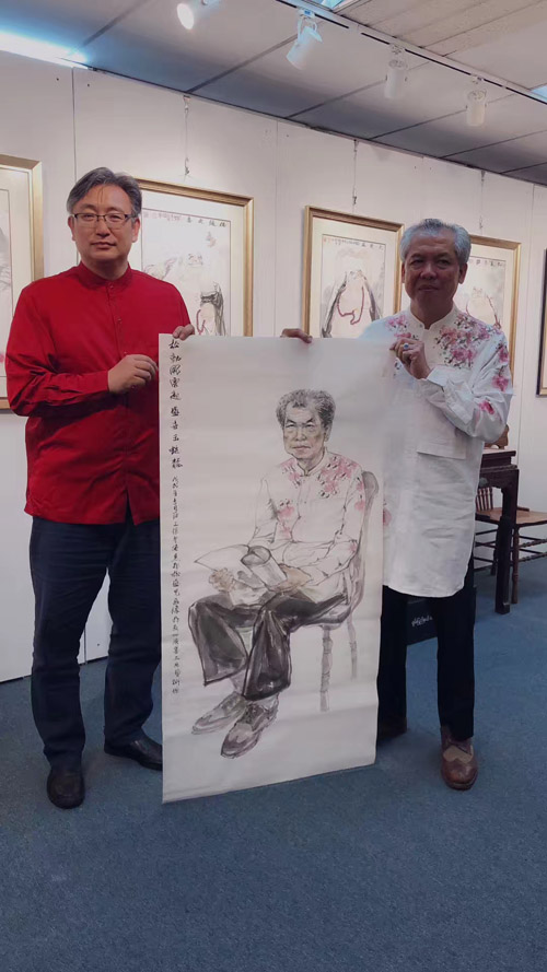 喜满星洲 和融千秋—水墨画大师张智栋作品展 张老师在墨玉斋艺术馆为新加坡选美大赛冠军Helen小姐现场作画